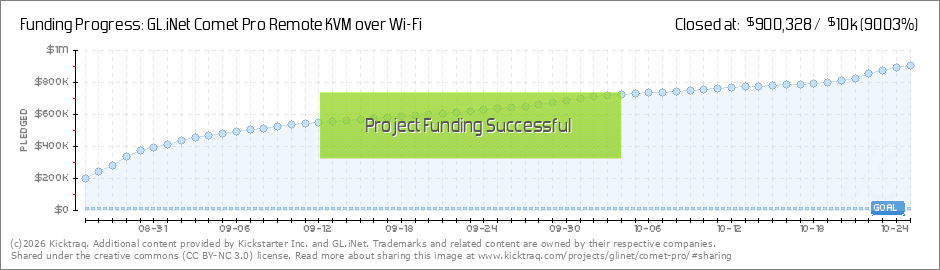 Hello amazing backers! We have HUGE news — thanks to YOU, our project "GL.iNet Comet Pro Remote KVM over Wi-Fi" are officially fully funded! Not only that, but Kickstarter has selected our campaign as a "Project We Love"! 💚 This recognition... (Read More)