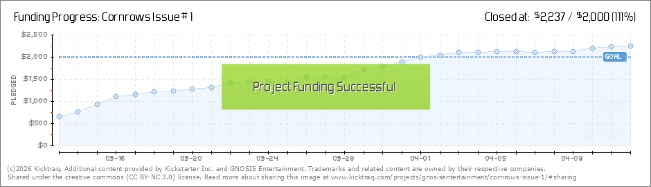 Look, THANK YOU! Really. We are humbled and grateful for all of your support — for backing Cornrows and for sharing and supporting in all the ways that you have... Next step? Getting Issue 1 out to you guys and the other cool rewards that’s in... (Read More)