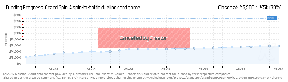 Thank youThank you all so much for your support in Grand Spin. I am still seeing new backers every day but at this rate it does not look like Grand Spin will be funded in time. GameplanMy current plan is to take the Kickstarter in a few days and... (Read More)