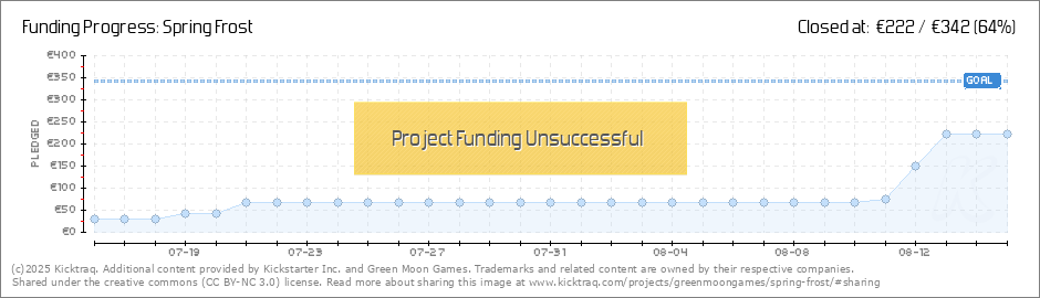 Hi there,As you have probably seen, Spring Frost is struggling to get funded, and a physical version seems compromised. But nothing is lost: there are just over 9 days left to make this book a reality! So do not hesitate to tell your friends and... (Read More)
