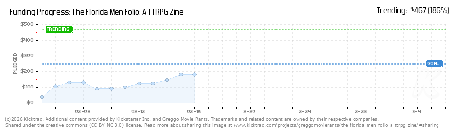One week into crowdfunding, and we're at roughly 40% of our funding goal! I want to thank everyone who has helped back The Florida Men folio thusfar. Your belief in this project is what's keeping it alive. While we aren't at our goal yet, I have full... (Read More)