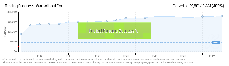 Hello Everyone!I'm thrilled to announce that "War without End" has successfully reached its funding goal! This incredible achievement would not have been possible without your unwavering support, enthusiasm, and belief in our project. From the bottom... (Read More)