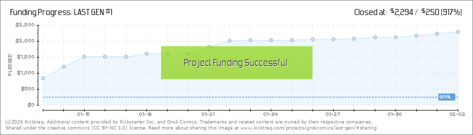 THANKS TO EVERYONE WHO SHARED OUR LINK!!! Please keep sharing! https://www.kickstarter.com/projects/grokcomics/last-gen We have unlocked the next 2 stretch goals! Now everyone will get a Grok Comics pin and a metallic sticker!! (Read More)
