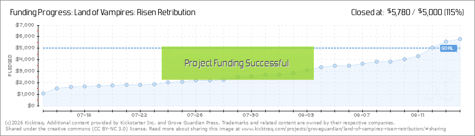 Dearest Adventurers of Steymhorod,Thanks to your incredible support, Land of Vampires: Risen Retribution has not only met its funding goal... we’ve sailed past it to 111% funded with over $5,500 pledged and 72 backers! Beth and I are so grateful to... (Read More)