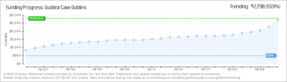 Help your backers reach your daily goals and help others see how you're doing. It's easy, with Kicktraq Mini.Here are a few quick snippits of code you can use to embed your personalized widget on your website, in your blog, and even on your favorite forum.