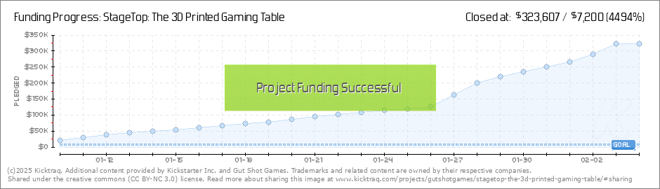 Thanks to each and every one of you. The StageTop 3D Printed Gaming Table campaign is off to a great start, and it is all because of your support. As an avid backer, I have always scoffed at campaigns that touted quick funding times, assuming the... (Read More)