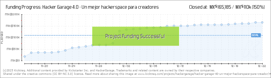 Gracias al apoyo de todos los backers, hemos llegado a la meta inicial de nuestra campaña, con lo cual podremos hacer de Hacker Garage el lugar que los creadores en Guadalajara merecen!Además queremos compartir algo de lo que ha sucedido en las... (Read More)