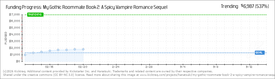 Help your backers reach your daily goals and help others see how you're doing. It's easy, with Kicktraq Mini.Here are a few quick snippits of code you can use to embed your personalized widget on your website, in your blog, and even on your favorite forum.