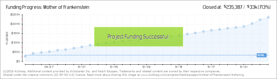 Hatch Escapes and Arvind Ethan David launched the Kickstarter campaign for Mother of Frankenstein on Sept. 24 and it was fully funded soon thereafter. The spooky, titillating tabletop game combines the immersive experience of an escape room with board game elements and a prose narrative, which players have to navigate through a series of puzzles to uncover the truth behind Mary Shelley's most famous creation. (Read More)