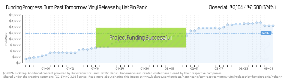 We are stoked to announce that we have officially surpassed our funding goal! 🎶💥 Thanks to all of you, we’re sitting at $2,930 pledged—117% funded! This means that our vinyl release of Turn Past Tomorrow is happening! We’re so excited to... (Read More)