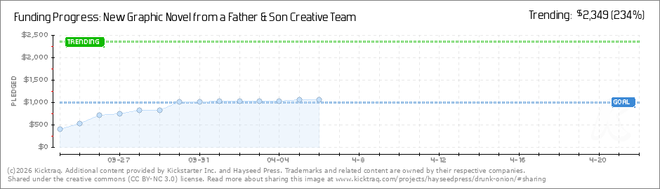 Welcome to the Drunk Onion Kickstarter campaign. We seek your support in helping us bring this titillating graphic novel come to life. Drunk Onion is an edgy, heartwarming, and super funny tale of redemption written and illustrated by the father and... (Read More)