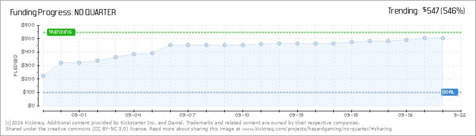 Well it only took 6 hours for you guys to get behind No Quarter. It was a modest goal but people still need to be into it, so thank you for believing in the project and, real talk, me. I'm looking at the stretch goals I had considered before... (Read More)