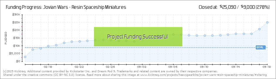 Now just under 2 days into Dream Pod 9's second Kickstarter the Jovian Wars Kickstarter has just over $8000 pledged or 88% of our $9000 Initial Funding Goal. We have been reading everyone's comments and messages here and on our Facebook page and DP9... (Read More)