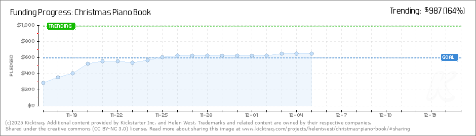 Help your backers reach your daily goals and help others see how you're doing. It's easy, with Kicktraq Mini.Here are a few quick snippits of code you can use to embed your personalized widget on your website, in your blog, and even on your favorite forum.