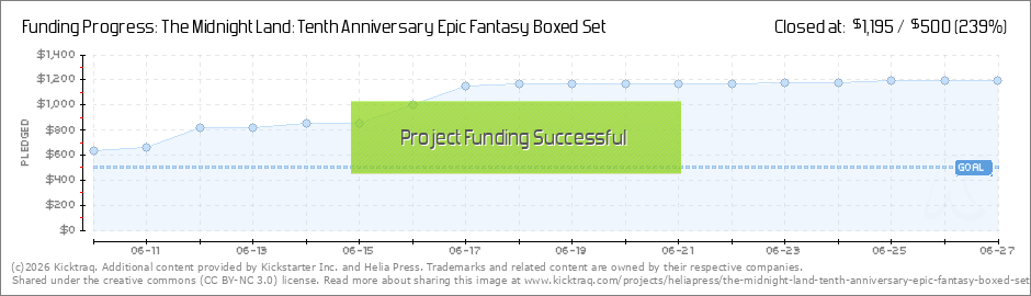 Hello to all you lovely backers! Thank you so much for supporting The Midnight Land special illustrated boxed set! I'm absolutely thrilled to announce that, because of your generous support, the campaign funded on its first day! The campaign is far... (Read More)