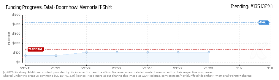 Help your backers reach your daily goals and help others see how you're doing. It's easy, with Kicktraq Mini.Here are a few quick snippits of code you can use to embed your personalized widget on your website, in your blog, and even on your favorite forum.