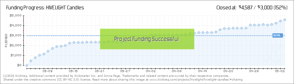 Thanks to my 14 lovely backers, as well as all of my friends for sharing my link! You guys have helped me raise $941 towards my beeswax candle business campaign. Your support this early on is proof to me that you have always, and will always have my... (Read More)