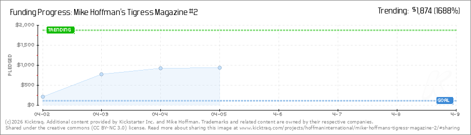 Help your backers reach your daily goals and help others see how you're doing. It's easy, with Kicktraq Mini.Here are a few quick snippits of code you can use to embed your personalized widget on your website, in your blog, and even on your favorite forum.