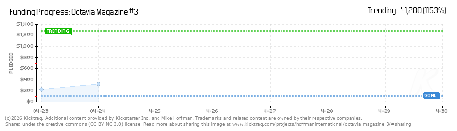 Help your backers reach your daily goals and help others see how you're doing. It's easy, with Kicktraq Mini.Here are a few quick snippits of code you can use to embed your personalized widget on your website, in your blog, and even on your favorite forum.
