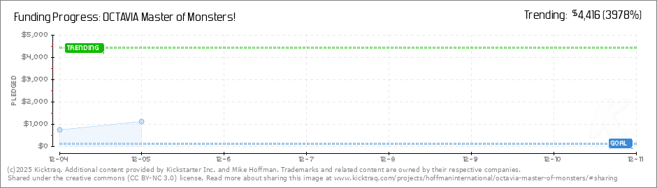 Help your backers reach your daily goals and help others see how you're doing. It's easy, with Kicktraq Mini.Here are a few quick snippits of code you can use to embed your personalized widget on your website, in your blog, and even on your favorite forum.