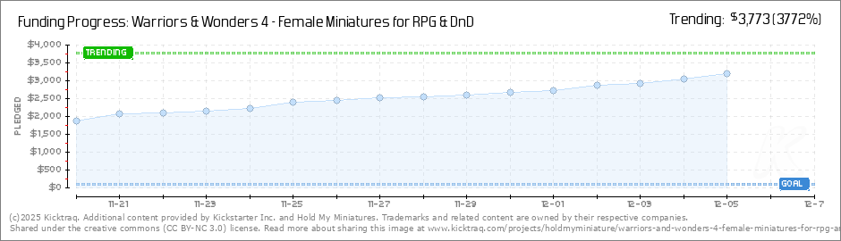 Help your backers reach your daily goals and help others see how you're doing. It's easy, with Kicktraq Mini.Here are a few quick snippits of code you can use to embed your personalized widget on your website, in your blog, and even on your favorite forum.