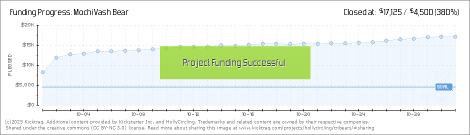 WOW. I didn't even get a chance to make a project launch update! The goal for Vash Bear has already been reached, which means the project is officially green-lit and everyone who pledges will get their rewards! YAY! Thank you all so much for your... (Read More)