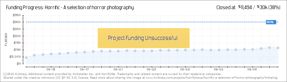 Well, it's looking a little grim. Less than a day left and only at 37% funded. We may have asked for too much on our inaugural project. We felt that with the following this photographer /artist has it would be enough to put us up over the edge, even... (Read More)