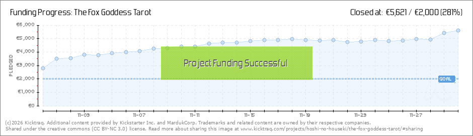 Thank you so much for the incredible support and smashing the funding goal in under 6 hours! The Fox Goddess Tarot Deck is a campaign very different from my previous campaigns, and I'm so happy to see that so many of you love it as much as I do!... (Read More)