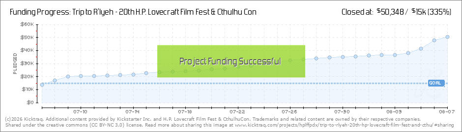 Hello all, An update before we get on the road to Gencon! Classics DVD Vol. 1 Stretch Goal UNLOCKED!We've just passed the stretch goal that will allow us to create the first volume of the H.P. Lovecraft Film Festival Classic Short Films DVD! THANK... (Read More)