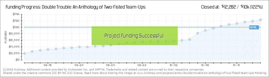 As of midnight, Double Trouble is officially funded! It's gonna be a real thing! Yay us! And yay you! Thank you all ever so much for your support. Now you're guaranteed to get what you pledged for! Next up is to hit the stretch goals! As I type this,... (Read More)