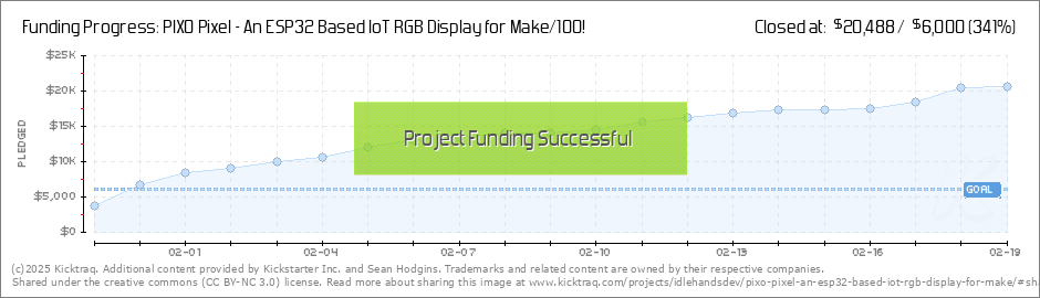 Hey Everyone, The project is moving along nicely and I am very happy with the progress so far. We hit our funding goal which is excellent! Here is the PIXO Pixel displaying the sold PIXO Pixel units, and the ones remaining, also showing the live... (Read More)