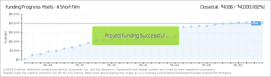 Thank you. Truly, there are no words. Thank you--every one of you for your incredible generosity and faith in our vision. When Poets goes into production this August, we can only hope to come close to capturing the energy and passion that have... (Read More)