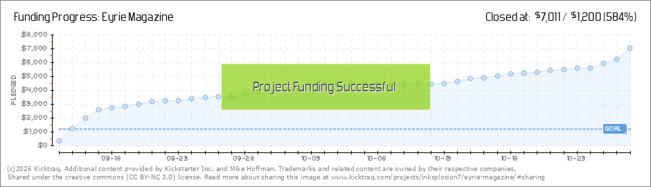 Help your backers reach your daily goals and help others see how you're doing. It's easy, with Kicktraq Mini.Here are a few quick snippits of code you can use to embed your personalized widget on your website, in your blog, and even on your favorite forum.