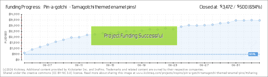 Hello backers! Over 90 of you have backed the Pin-a-gotchi project. Words cannot express how elated I am by your support. Coming in at $3472, we were just shy ~$500 of getting the Celeste pin funded. Have no fear though! Once this project has... (Read More)