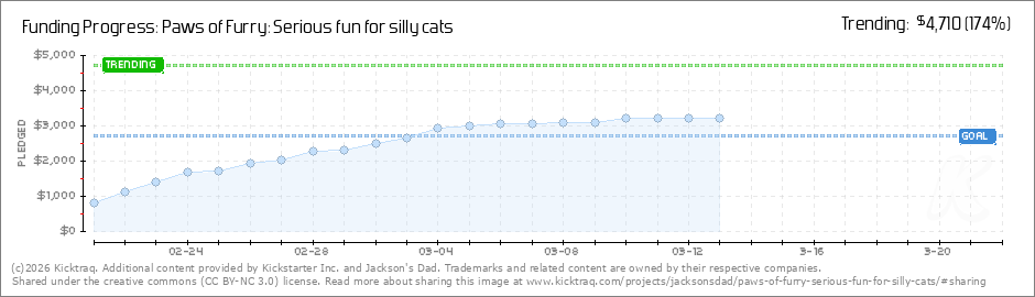 Help your backers reach your daily goals and help others see how you're doing. It's easy, with Kicktraq Mini.Here are a few quick snippits of code you can use to embed your personalized widget on your website, in your blog, and even on your favorite forum.