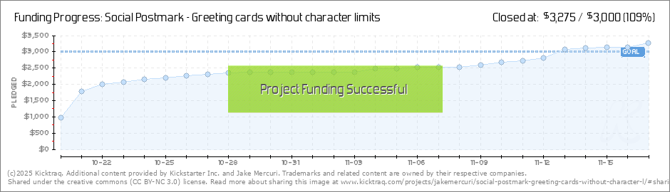We made it! Social Postmark is now fully funded! We can’t thank you all enough for the support, the pledging and the belief in the project. It means the world to us, and hopefully these cards bring joy to your world too. We're getting right to... (Read More)
