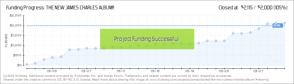 We made our goal;) You guys are so amazing and thank you so much! After the project ends tomorrow night I will need everyone's email and physical addresses so when the new album is done I can send you your awesome reward! Thanks again so much you... (Read More)