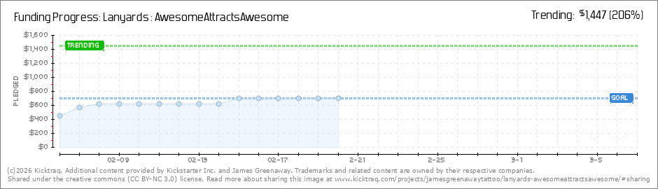 Help your backers reach your daily goals and help others see how you're doing. It's easy, with Kicktraq Mini.Here are a few quick snippits of code you can use to embed your personalized widget on your website, in your blog, and even on your favorite forum.