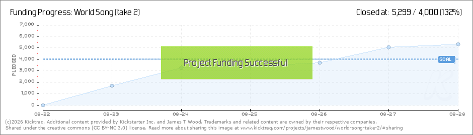 Help your backers reach your daily goals and help others see how you're doing. It's easy, with Kicktraq Mini.Here are a few quick snippits of code you can use to embed your personalized widget on your website, in your blog, and even on your favorite forum.
