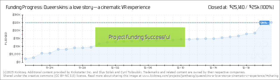 Dear Friends: We have about $10,000 to go and only 10 days to raise that. If we can bring this to finish, it guarantees that other stories that push buttons and break boundaries will be made. Otherwise, well, you are going to see VR populated by... (Read More)