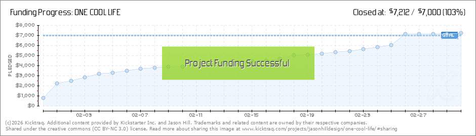 Thanks to each and every one of you, One Cool Life is now 62% funded with more than two weeks left to meet our goal! Thank you again for your pledge!! (Read More)