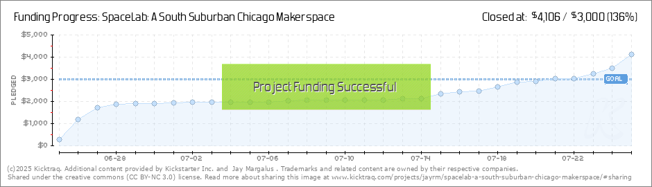 Dear backers and supporters: Thank you!!! We did it! We made our Kickstarter goal with three days to go. But that's not the end! By continuing to share and support this project, you ensure a future SpaceLab that will exist in the south suburbs... (Read More)