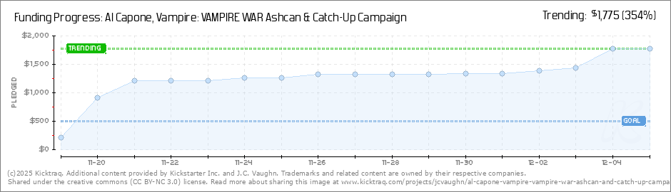 YOU TOOK THE FIRST BITE!Thanks so much for getting the AL CAPONE, VAMPIRE: VAMPIRE WAR Ashcan off to such a great start. On behalf of everyone on the team, I want to express our gratitude. We couldn't do this without your help! And here's a look at... (Read More)