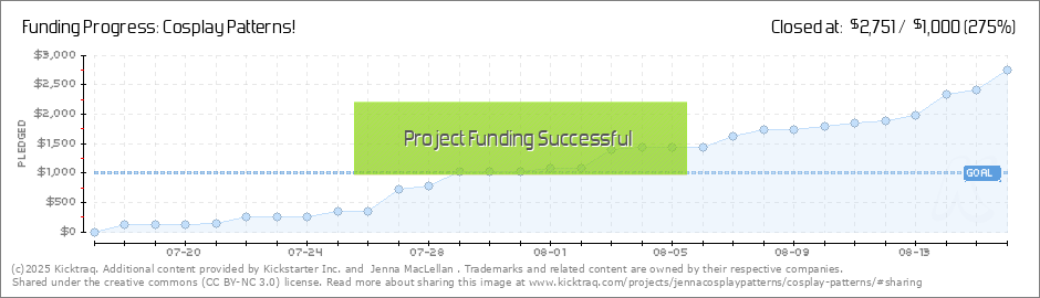 Holy cow you guys! $1000!!!!!! Thank you guys so much!!!!! Since I know its official, I can actually start working on what i can when I'm back home. I still will wait until the whole kickstarter is done before I ask for pattern prefrences/... (Read More)