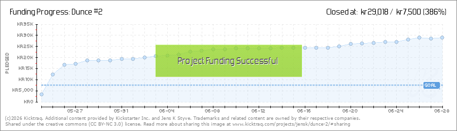 Dear backers, there's now less than one week left of this campaign! Dunce 2 is allready well funded and I'm super-grateful and really looking forward to get my hands on this/send it out. There has been several good news for Dunce the lately (your... (Read More)