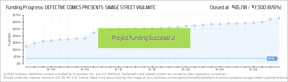 Hey guys! Just a super quick message to say THANK YOU very much for making yesterday's launch of the DEFECTIVE COMICS PRESENTS: SAVAGE STREET VIGILANTE comic book a huge success! Man. I mean, it went WAY better than I was expecting! Fully funded in... (Read More)