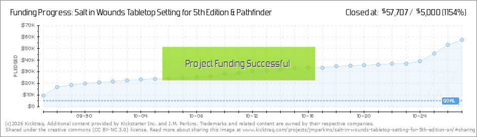 As I write these words during our final week, the Salt in Wounds Kickstarter has raised over $36000 and is over 720% Funded. Holy crap, thank you guys! Barring something entirely unexpected, I’m near certain we’ll raise over $40,000 (thus... (Read More)