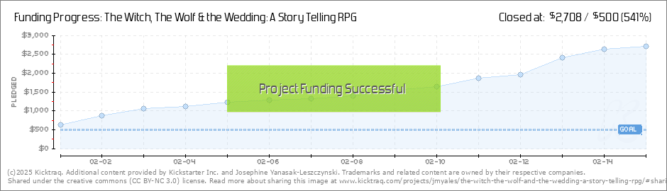 Good morning, Wanderers! The light of the moon graced us with her guidance through the trees last night: the funding goal for The Witch, the Wolf, and the Wedding has been met! We are well on our way to meeting the $1,000 stretch goal, which will... (Read More)
