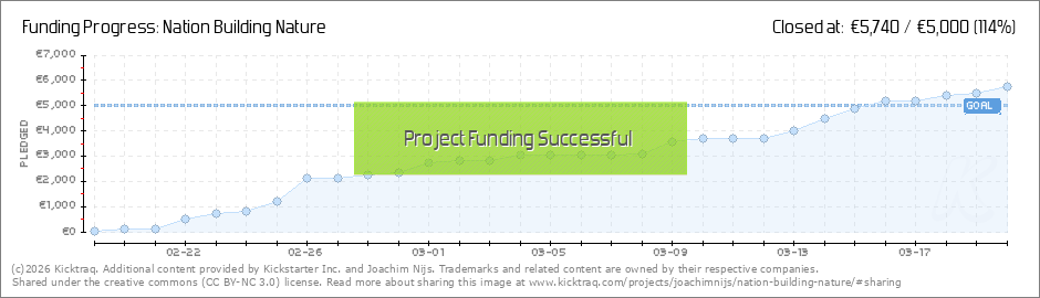 We did it!! Many thanks to all the backers from around the world!! Now it's my time to deliver. Join us on facebook to stay in the loop: https://www.facebook.com/Nation-Building-Nature (Read More)