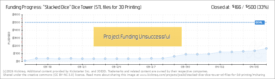 Wow, thanks for your support and comments so far. I wasn't really sure what to expect considering this is my first Kickstarter project. For those that have backed, if we do not reach our funding goal, please reach out to my email TheJoe3D@gmail.com,... (Read More)